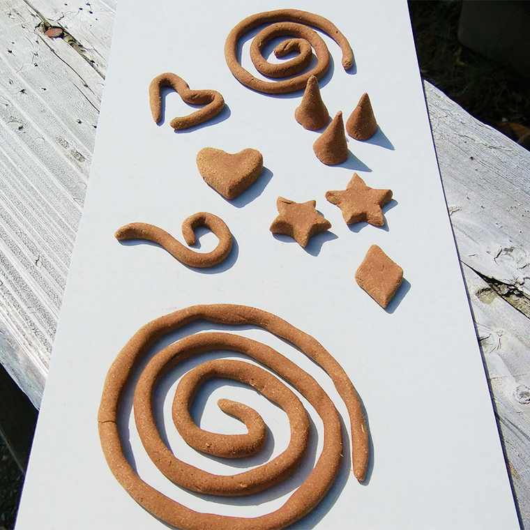 材料と天然香料をまぜて、ギューッと押し固めて乾かします。